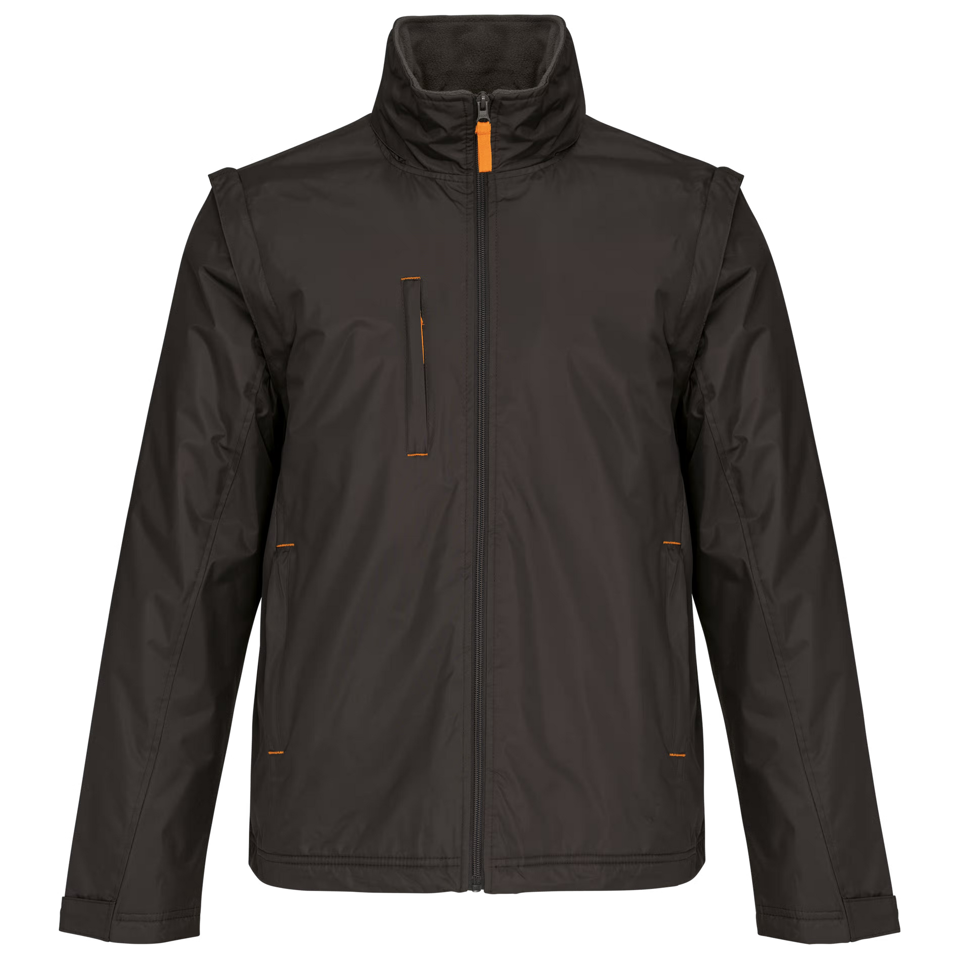 100% polyester avec enduction PVC. Doublure corps en polaire 100% polyester. Tissu souple. Fermeture zippée. 3 poches zippées. Manches amovibles zippées. Patte de serrage au bas des manches. Tirette du zip, tresse encolure et points d'arrêt contrastés. 3 poches intérieures (2 zippées et 1 poche pour le téléphone). Cordon de serrage intérieur contrasté au bas du vêtement. Capuche dans le col.