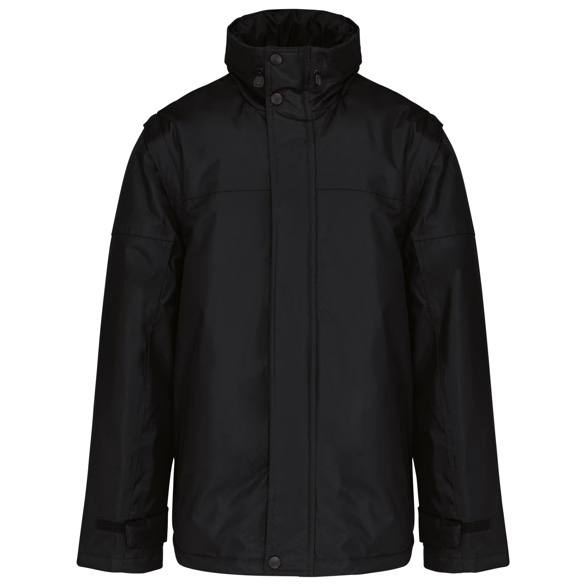 Extérieur : 100% polyester enduction PVC. Fermeture zippée et patte de boutonnage à pressions. Patte de serrage bas de manche auto-agrippante. Capuche sans col, fermeture zippée avec cordon élastique. 2 poches intérieures + 1 poche pour téléphone portable.