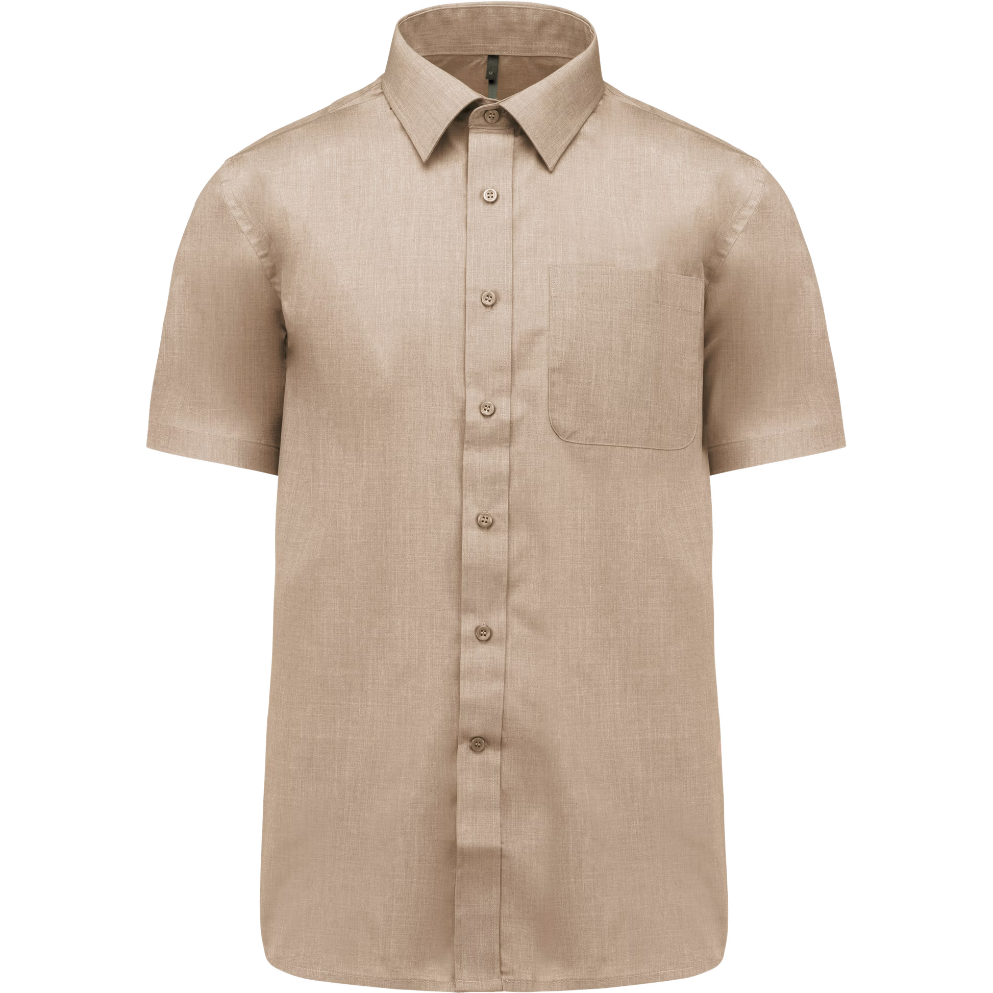 65% polyester / 35% coton. Tissu popeline. Entretien facile. Pointe de col baleinée. Boutons ton sur ton. Poche poitrine côté gauche à angles arrondis. Empiècement dos double. Finition coutures rabattues. Ourlet bas de manche double rempli. Bouton de rappel. Bas arrondi.