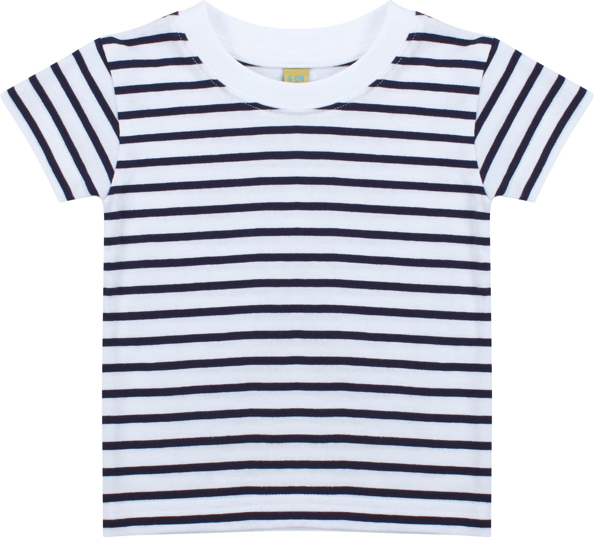 100% coton jersey. Bande de propreté. Manches montées et finitions double aiguille. Uniquement une étiquette de taille à l'encolure.