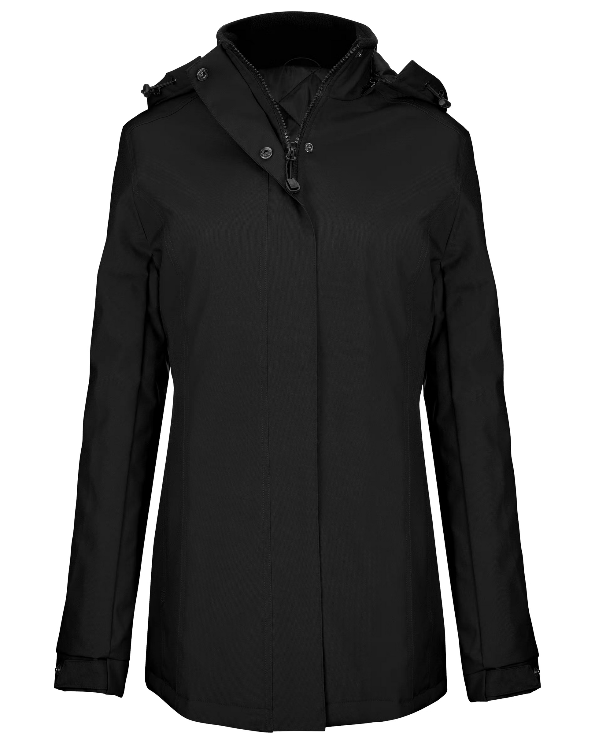 Extérieur : 100% polyester Oxford. Intérieur : polyester matelassé. Fermeture zippée avec patte et pressions invisibles. 2 poches extérieures zippées. 1 poche intérieure. Capuche amovible. Col doublé polaire.