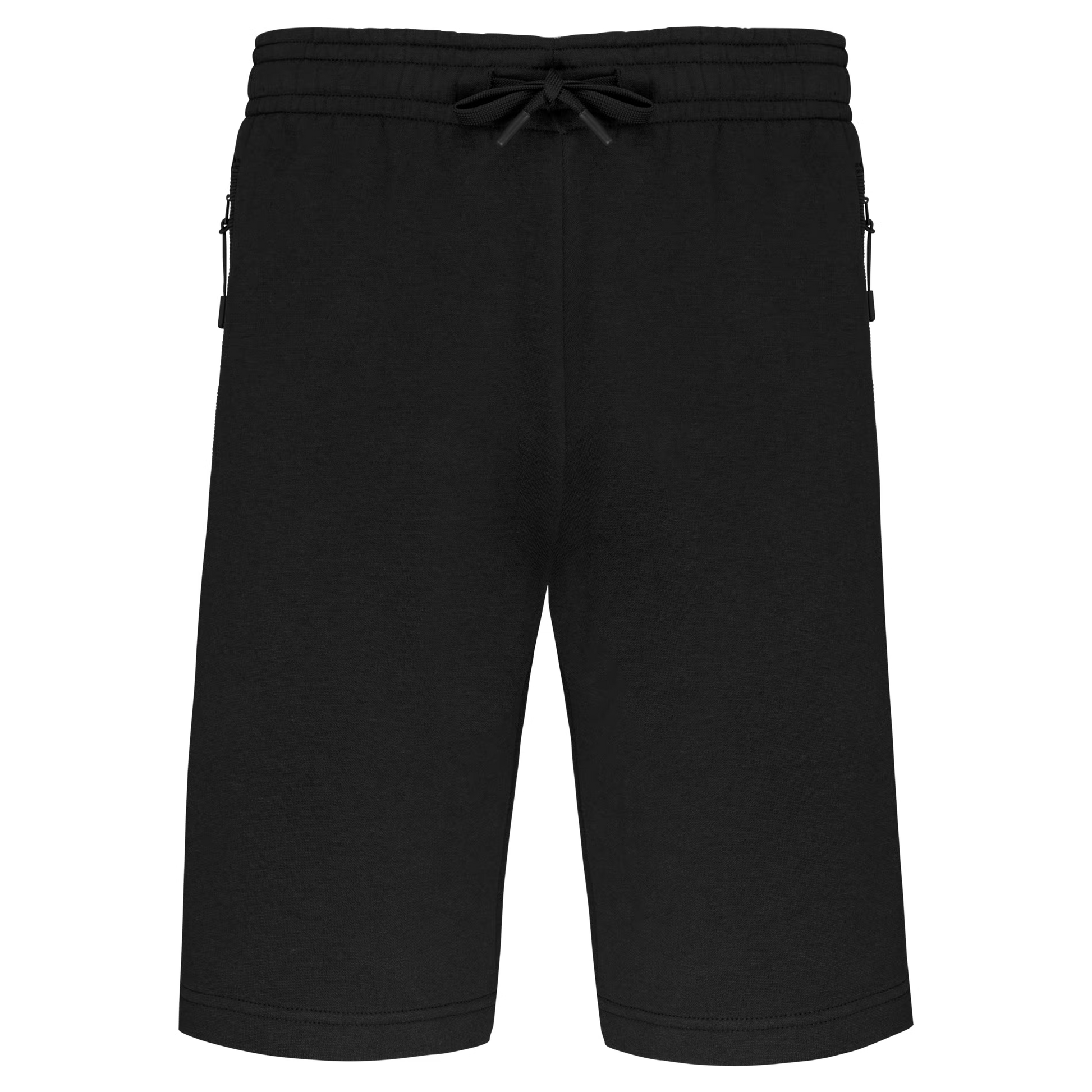 65% polyester / 35% coton. Molleton gratté. Ceinture élastiquée avec cordon de serrage ton sur ton. Pour plus de confort, finition intérieur taille par bande élastique au touché doux, contrastée avec liseré fluorescent. 2 poches côtés fantaisie avec fermeture à glissière, sac de poche en maille filet et une poche téléphone contrastée fluorescente. 1 poche plaquée arrière. Finition double aiguille au bas de jambe.