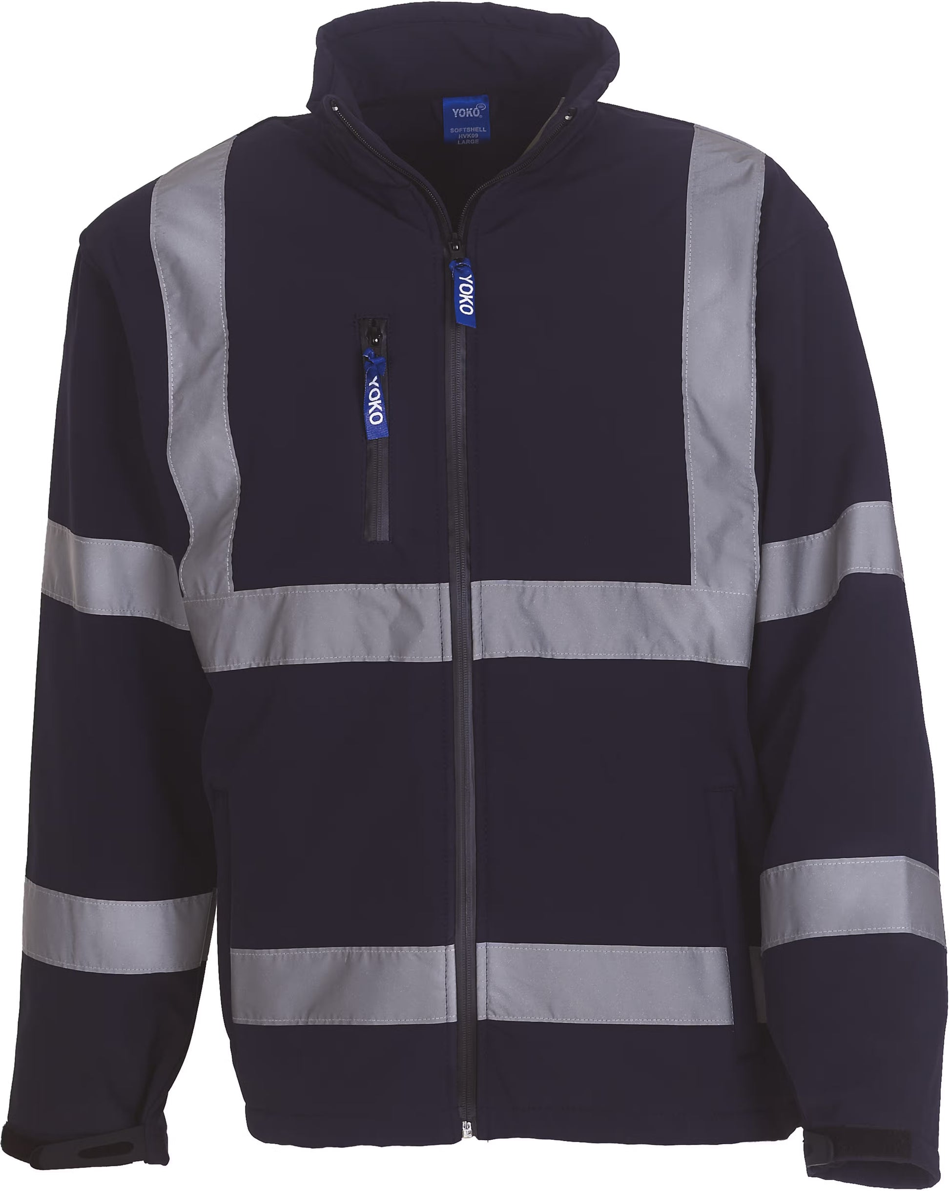 100% polyester. Softshell 3 couches, imperméable 8000 mm. Extérieur 100% polyester. Intermédiaire : TPU imperméable. Intérieur micropolaire. Bandes réfléchissantes de 5 cm de large autour du corps et des bras et une sur chaque épaule. Zips 100 % imperméables. Tirettes avec logo à l'avant et sur la poche poitrine. 2 poches réchauffe-mains zippées. Dispositif de réglage des poignets en caoutchouc et cordon de serrage à la taille. Dos plus long. Conforme à la norme EN ISO20471:2013 Classe 3 : uniquement Hi-Vis Yellow, Hi-Vis Yellow/Navy, Hi-Vis Orange et Hi-Vis Orange/Navy. Également conforme à la norme GO/RT 3279 en coloris Hi-Vis Orange et Hi-Vis Orange/Navy.