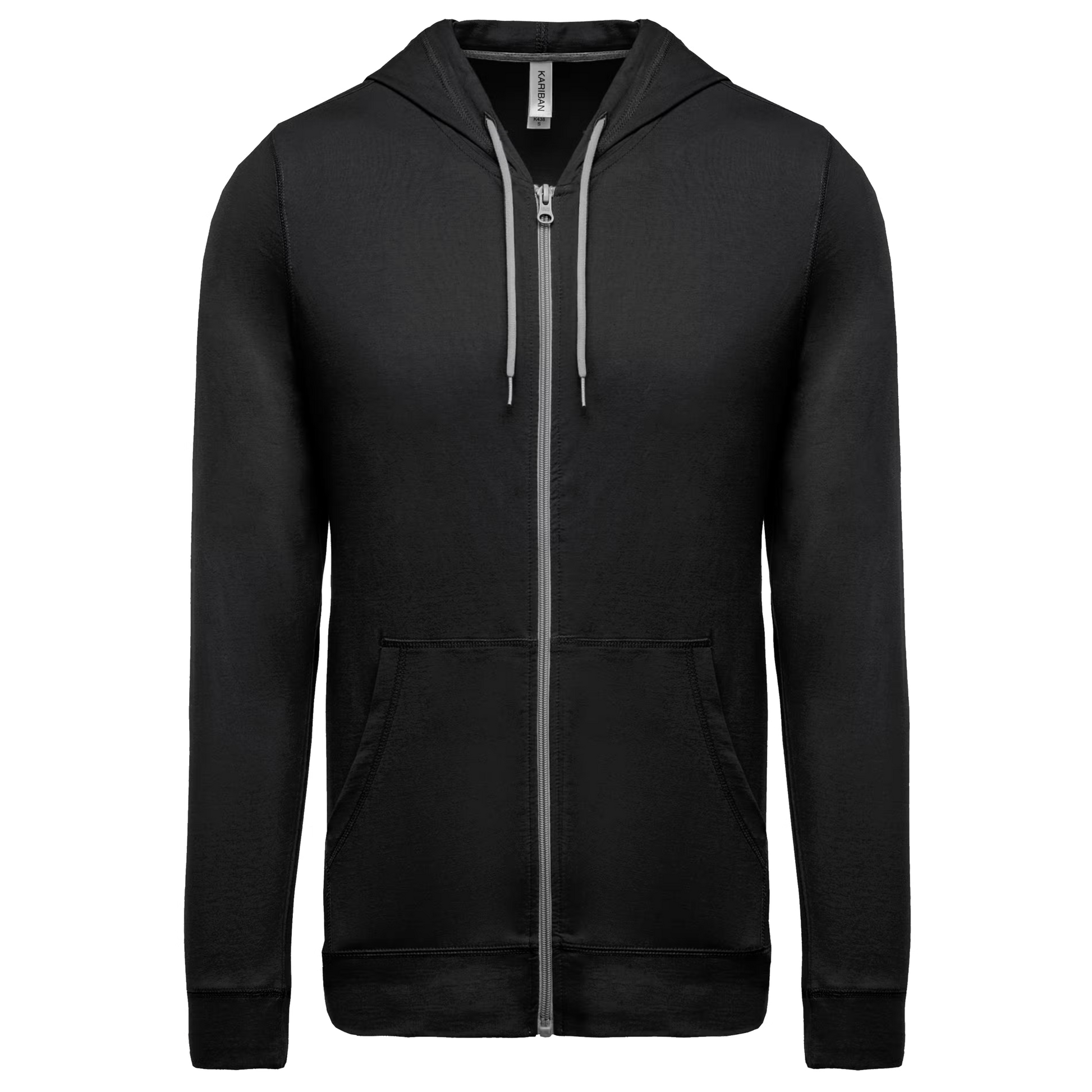 100% coton (Oxford Grey : 90% coton / 10% viscose). Coton peigné avec lavage aux enzymes. Toucher très doux. Coupe moderne et décontractée. Bande de propreté contrastée à l'encolure (Dark Grey pour le coloris Oxford Grey et Oxford Grey pour les autres coloris). 2 poches kangourou. Poignets et bas de vêtement en tissu principal. Zip contrasté et cordon de serrage capuche bicolore.