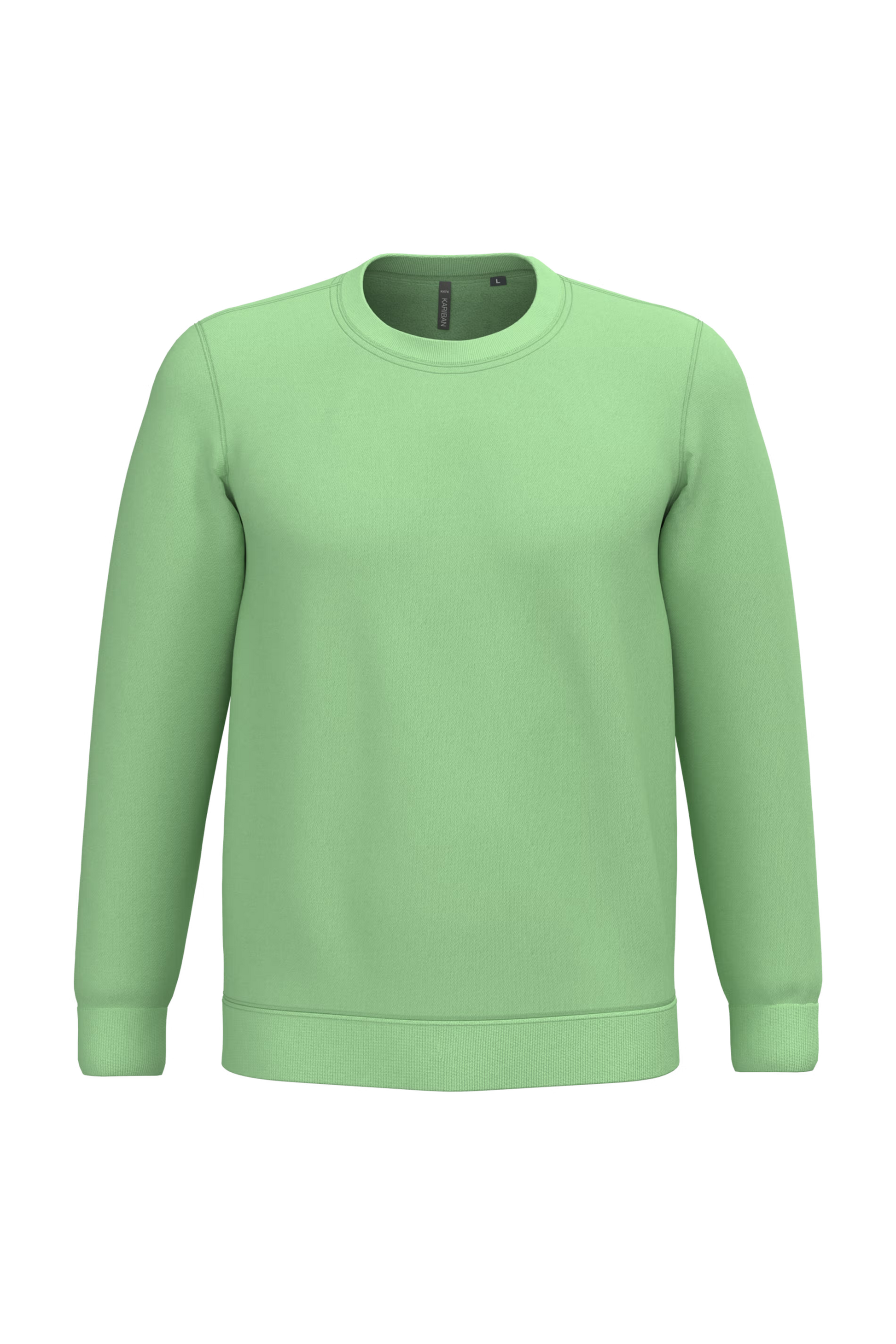 80% coton / 20% polyester. Coton peigné. Molleton gratté. Manches montées. Finition bord-côte encolure, bas de manches et de vêtement.